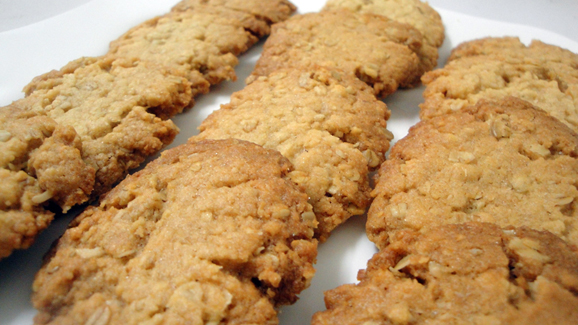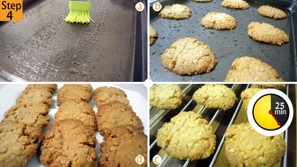 - Grease your baking sheet with pure vegetable oil. Spoon a level tablespoon of the mixture onto the baking sheet, and press down gently. Keep the cookies about 3 cm apart. Bake for 25 minutes or until they are a beautiful brown colour. Cool them on a cooling rack for about 5 minutes and they’re ready to eat.