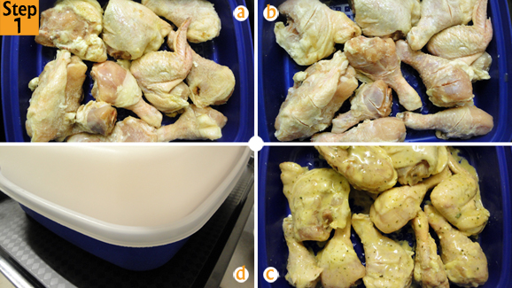 - Get your chicken portions ready. Cut diagonal slits through each chicken portion. Deep each piece into the marinade then put in an air-tight container and refrigerate for a minimum of 30 min to a maximum of 48 hrs. The longer it stays in the refrigerator as your chicken will get more flavor from the marinade.