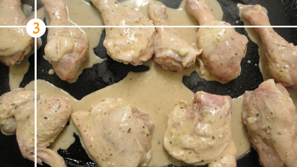 - After your refrigeration time put your chicken portions in a heat proof dish and grill-bake for 45min or until golden brown at 180 degrees Celsius/ 350 F/ gas-mark 6