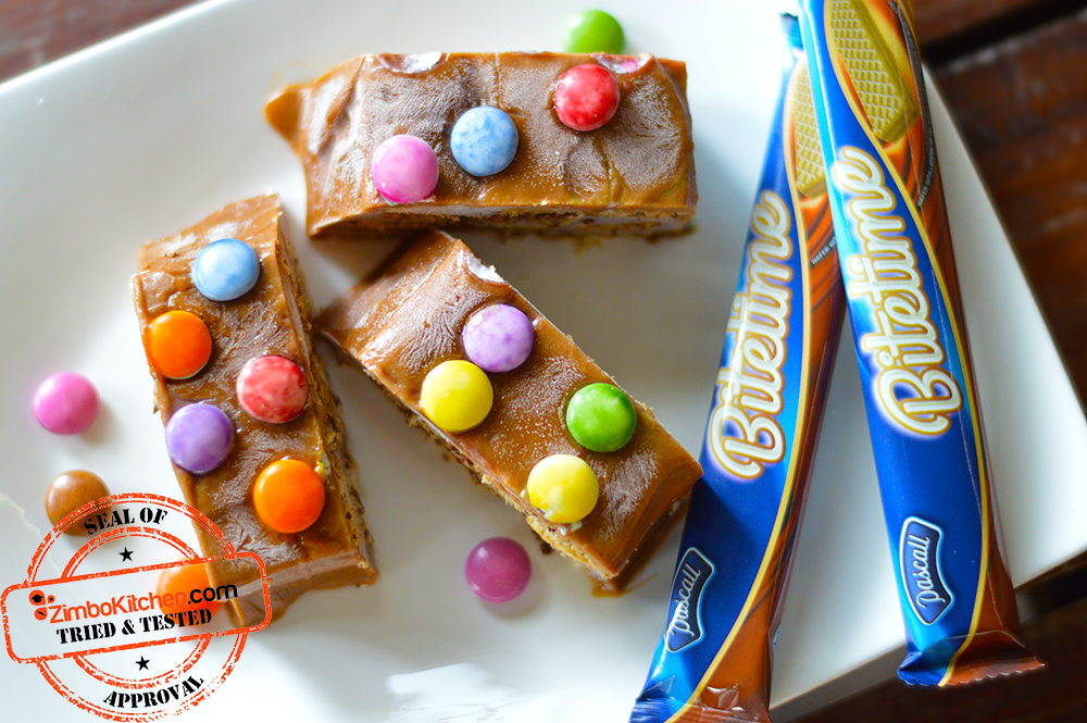 - Place 3 Pascall Bitetime chocolates in a row on a freezer safe plate. Spoon the chocolate pudding on top and spread evenly. Place 3 more Bitetime chocolate on top in a similar fashion. Repeat process until the chocolates are finished.
