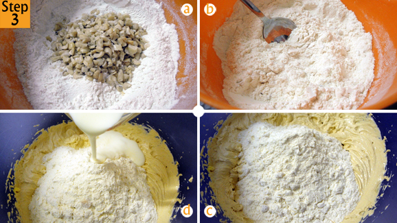 - Sift flour into a bowl, add 3/4 of the chopped peanuts to it and mix until it’s well combined. Take set aside bowl and add half the flour and half the milk.